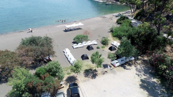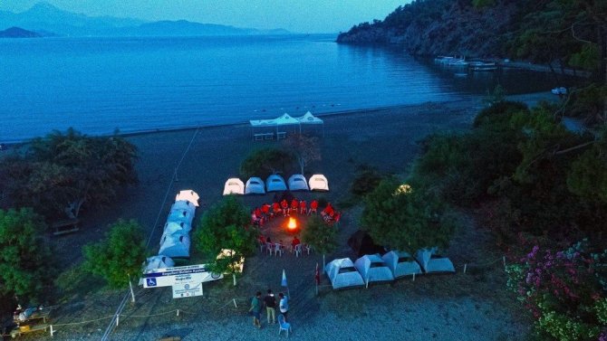 Muğla Büyükşehir Belediyesi’nin düzenlediği ‘Engelsizciler’ projesi kapsamında 20 engeli birey, ailelerinden uzak, deniz ve ormanın bitiştiği nokta olan İnlice Halk Plajında iki gün kamp kurdular. Fethiye Belediyesi’nin işletmesinde olan alanda ilk olarak çadır kuran engelli bireyler, daha sonra bölge temizliği yaparak çevredeki çöpleri topladılar. Muğla Büyükşehir Belediyesi’ne bağlı 8 personel izci lideri olarak yardımcı olurlarken, 2 günlük kamp süresince Büyükşehir ambulansı ve sağlık ekipleri hazır bulundu.