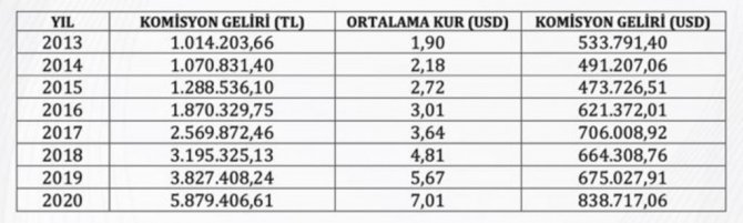 "Sigorta acentelerinin, ana şirket adına düzenledikleri poliçelerden elde ettikleri komisyon gelirleri haricinde herhangi bir gelirleri yoktur" denilen açıklamada, "Acentenin karlılığı da komisyon gelirlerinden tüm giderlerin düşülmesiyle hesaplanır. Şirketimizin bahse konu dönemlerde elde ettiği komisyon gelirleri, giderleri düşülmemiş haliyle, TL cinsinden aşağıdaki tabloda verilmiş, ilgili yılların ortalama dolar kuru ve yine o yılın komisyon gelirinin dolar cinsinden tutarı, aynı tabloda paylaşılmıştır. Ortaya atılan iddiaların gerçekdışı olduğu tablodan açıkça anlaşıldığı gibi, halihazırda ülkemizde dolar kuru 8.6 seviyesinde olup, 2020 geliri, bugünkü kur üzerinden hesaplanırsa 683 bin 651 dolar olduğu görülmektedir. Ortaya atılan iddialara kaynaklık eden haberdeki değerlendirme ise esasen 1996 yılındaki şirket kuruluşu sırasında, ticaretle uğraşan herkesin bildiği mali bir zorunluluk olarak bildirilen şirket kuruluş sermayesi üzerinden yapılmış olup, yine o değerlendirmenin de gerçekçi bir yanı yoktur. Öte yandan; aynı mahfillerce gündeme getirilen "esigortan.net" adlı bir şirketin kurulması ile ilgili olarak da halihazırda ticari herhangi bir faaliyet veya etkinlik söz konusu değildir. Atılan ve atılacak olan bu tür iftiralara karşı acentemiz, gerekli açıklamaları kamuoyu ile paylaşacak ve suç duyurularında bulunup yasal haklarını kullanacaktır" ifadelerine yer verildi.