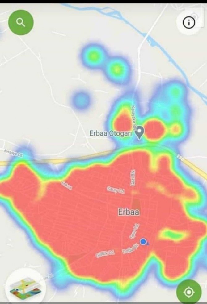 Tokat'ın Erbaa ilçesinde "Hayat Eve Sığar" mobil uygulamasında korona virüs vaka yoğunluk haritası, özellikle son 2 ayda alınan tedbirler ile kırmızıdan...