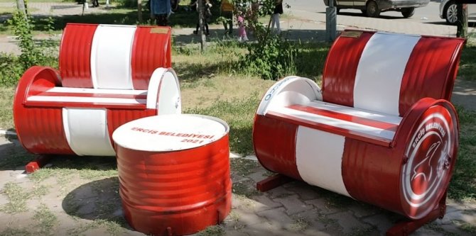 VAN (İHA) – Van'ın Erciş Belediyesi atıl malzemeleri geri dönüştürerek park ve bahçelerde vatandaşların kullanımına sunuyor.
