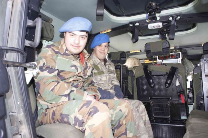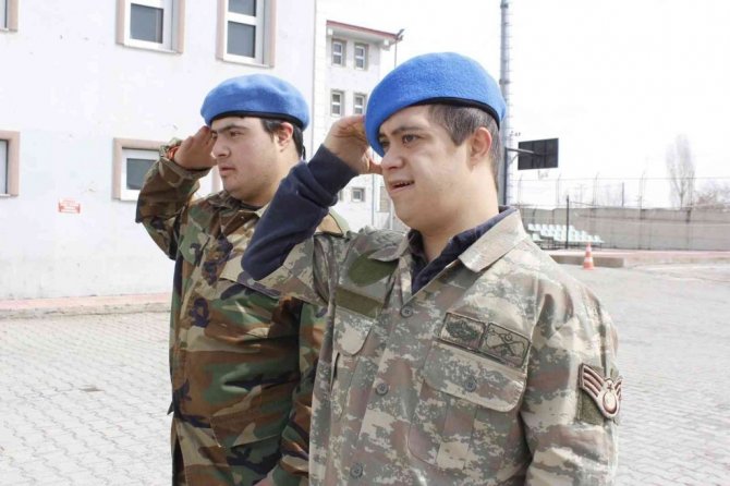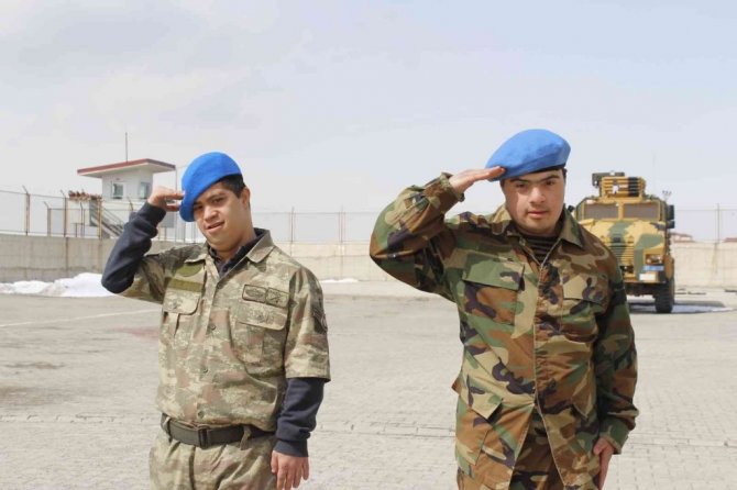 Van'ın Erciş ilçesinde yaşayan down sendromlu Deniz Korkmaz ve Enes Batmaz, asker kıyafeti giyerek 1 günlüğüne asker oldu.