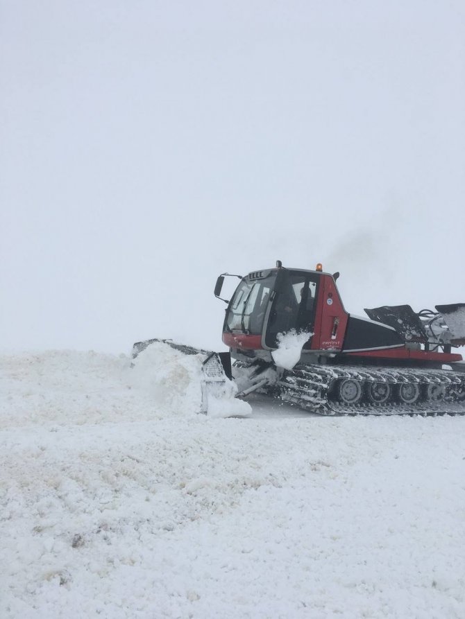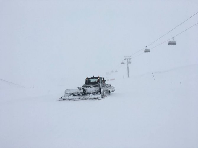Türkiye'nin önemli kayak merkezlerinden biri olan Erciyes Dağı'nda kar yağışı etkili oluyor. Yağan kar ile kar kalınlığı 50 santimetreyi bulurken, yetkililerde kar ezme araçları ile pistleri hazır hale getirmek için yoğun çalışma yürütüyor.