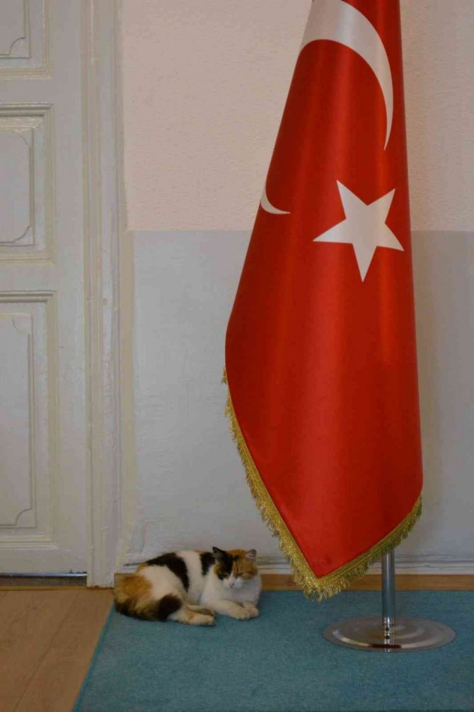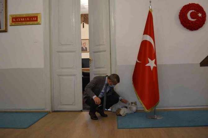 Soğuk kış günlerinde, tarihi Erdek Hükümet Konağı'nın sevimli konuğu bir kedi, ilgi odağı oluyor. Kaymakamlık ve adalet birimlerine ait binanın bahçesinde beslenen kedi, havalar soğuyunca da sık sık soluğu binanın içinde alıyor. Binanın içinde gezinen kedi, çalışanlar tarafından çok seviliyor. Sevimli konuk, zaman zaman da Kaymakamlığın bulunduğu ikinci kata çıkıyor. Kaymakam Abdullah Atakan Atasoy, makam odasının kapısında bile yatan minik konuğa ayrı bir sevgi ve şefkat gösteriyor. Atasoy, "Bu soğuklarda, sokaktaki bu canlara da sıcak bir ortam vermek, onları doyurmak bir insanlık görevi. Sokak hayvanlarının zaten çok zor olan yaşamlarını kolaylaştırmaya çalışalım. En azından evlerimizin önüne onlar için yiyecek ve su koyalım" dedi.