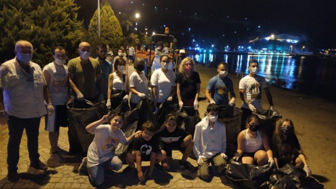 Erdek Belediyesi Çevre Koruma ve Kontrol Müdürlüğü ekibi, "Kurbağalıdere" plajında, akşam saatlerinde vatandaşları çevreyi koruma konusunda bilgilendirip, çöp topladılar.
