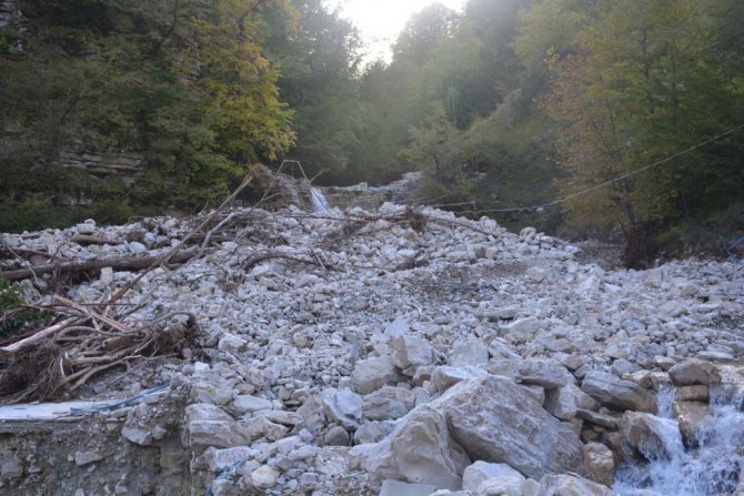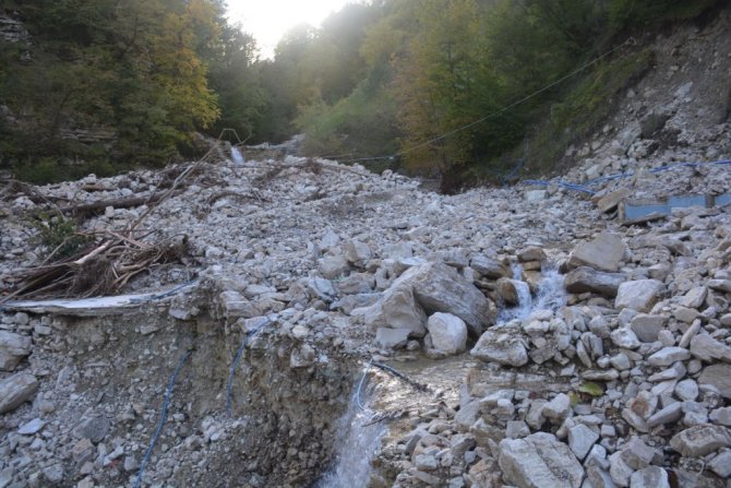 Erfelek Tatlıca Şelaleleri selin getirdiği molozlarla doldu
