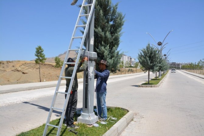 Ergani Belediyesi Park Bahçeler Müdürlüğü ekipleri, Adnan Menderes Mahallesindeki yürüyüş yolları ve Ergani Devlet Hastanesi çevresinde bulunan ve çeşitli olumsuzluklardan dolayı deforme olan aydınlatma direklerini onarıyor. Ergani Kaymakamı ve Belediye Başkan Vekili Abdulselam Öztürk'ün talimatlarıyla teknik ekipleri tarafından sürdürülen çalışmalar kapsamında, hasar görmüş ve işlevini yitirmiş dekoratif aydınlatma direklerinin kırılan parçaları yenilenirken, iç ve dış elektrik sistemleri tamir ediliyor. Çalışmaların tamamlanması ile yürüyüş yollarının aydınlık olması ve caddelerin yol boyunca estetik bir görünüme kavuşması sağlanacak.