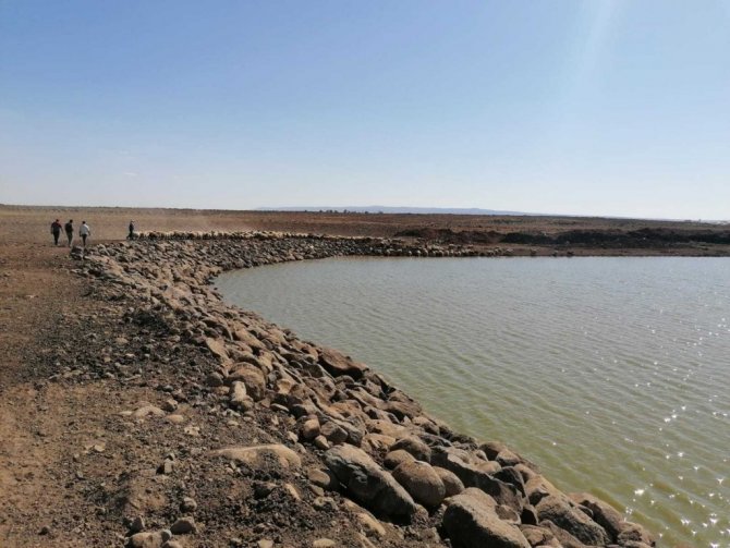 Hayvan içme suyu göletlerinin bentlerini yenileyen ve göl aynasında oluşan toprakları iş makineleriyle temizleyen ekipler, göletlerin daha verimli su toplamalarını sağlamak amacıyla seviyesini yükseltti.
