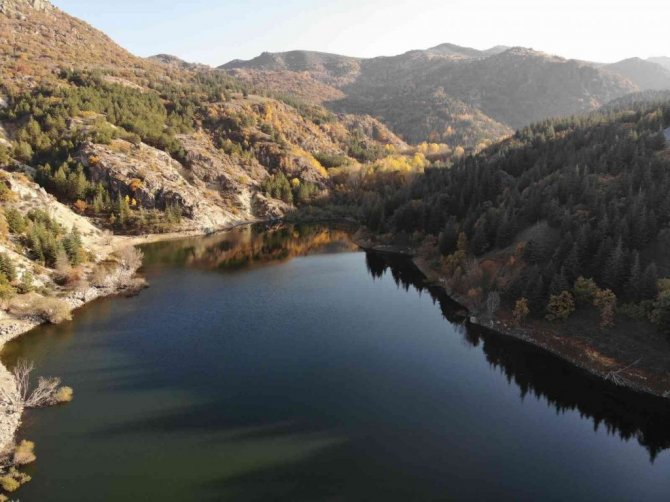 Sonbahar mevsimi biterken kış uykusu öncesi doğa seyrine doyumsuz görüntüler ortaya çıkardı. Uykuya dalmaya hazırlanan doğadaki ağaçların su yüzeyine yansıyan görüntüleri adeta bir renk cümbüşü oluştururken, görenleri kendine hayran bıraktı.