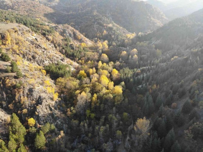 Afyonkarahisar'da 516 dekar alana sahip Erkmen Tabiat Parkı'nda sonbaharın son ayında ortaya çıkan eşsiz doğa manzaraları görenleri kendisine hayran bırakıyor.