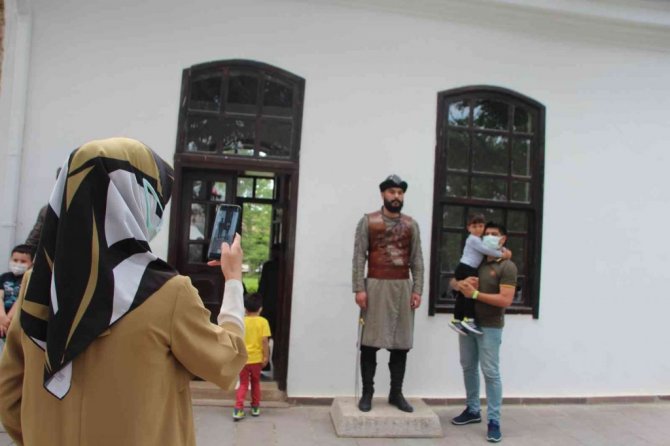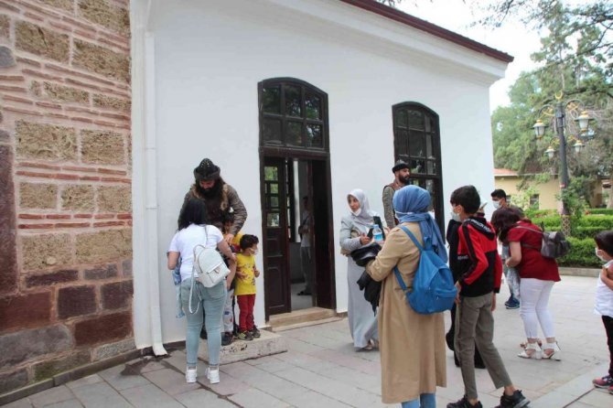 Kocaeli'nin Gebze ilçesinden ailesiyle Ertuğrul Gazi Türbesi'ni ziyaret gelen İbrahim Yıldız, "Malumunuz pandemi sürecinde türbeler kapalıydı. Uzun süredir gelemiyorduk. Rabbim nasip etti, çoluk çocuğumuzla, ailemizle birlikte dedemizi, atamızı ziyarete geldik" dedi.
