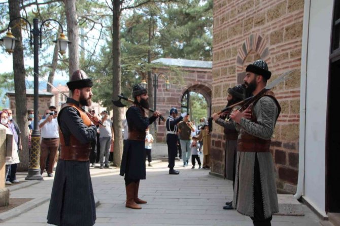 Ertuğrul Gazi Türbesi’ndeki ’Saygı Nöbeti’ni pür dikkat izliyorlar