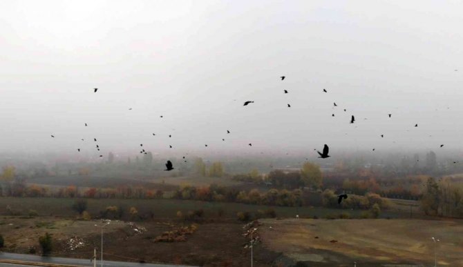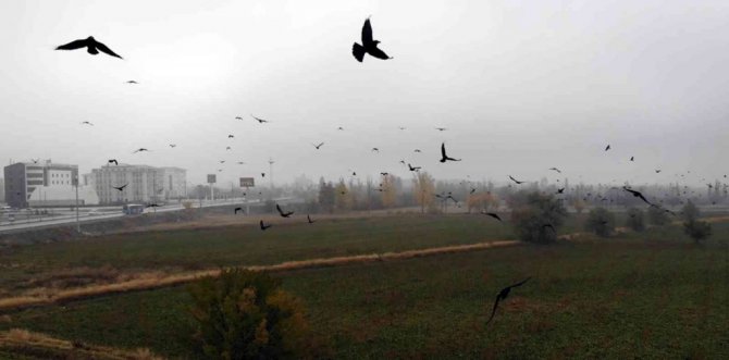 Öte yandan siste uçuşan yüzlerce karga ise görsel şölen oluşturdu.