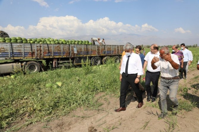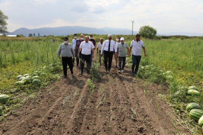 Vali Makas, Tarım ve Orman İl Müdürü Murat Şahin ile birlikte Beşsaray köyünde 200 dönüm alanda üretim yapılan karpuz tarlasını ziyaret ederek üreticilere kolaylıklar diledi. Bol ve bereketli ürün hasat etmeleri temennisinde bulunan Vali Makas daha sonra Mahmutlu köyünde sebze ve meyve üretimi yapan vatandaşları tarlalarında ziyaret ederek, işlerinde kolaylıklar diledi.
