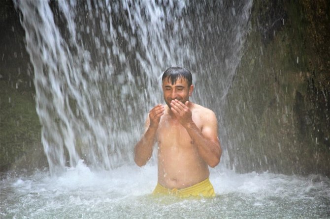 Girlevik Şelalesi'nin buz gibi suyunda yüzerek serinlemeye çalışan Ali Şimşek, "Buraya tatil amaçlı geldik. Su geçen senelere oranla azalmış. Bu sene biraz düşmüş galiba. Güzel geçiyor zaman, serinlemeye çalışıyoruz. Ailemizle birlikte oldukça güzel zaman geçiriyoruz. Pandemi yasakları sonrası, tabi bizi hapsetmişti evlere, onun tadını tuzunu burada çıkarıyoruz. Burası bizim için bir heyecan oldu." dedi.