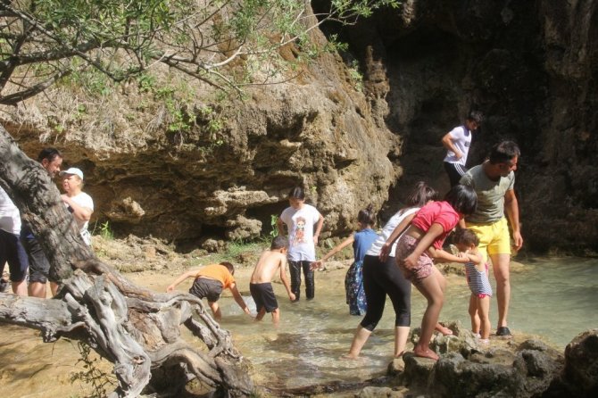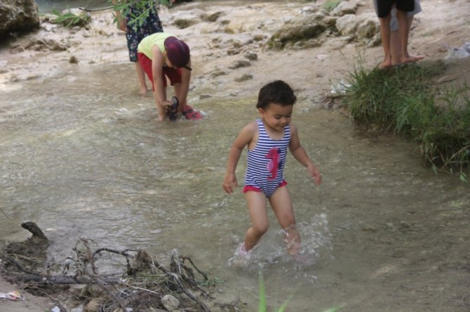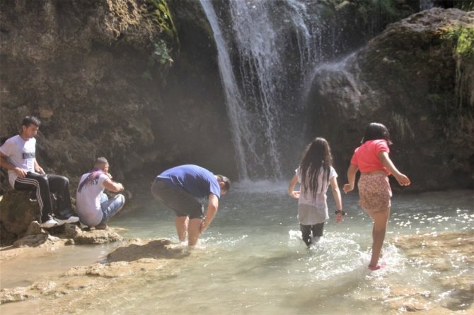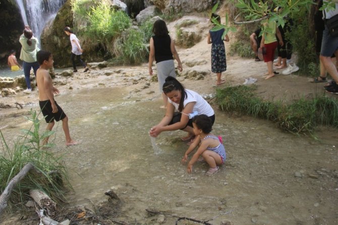 Sıcak havadan bunalan vatandaşlar Erzincan'daki Girlevik Şelalesi'ne akın ediyor.
