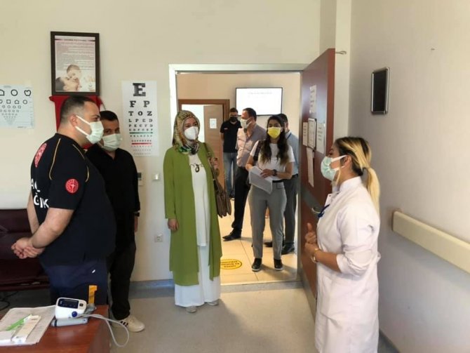 Hastane Başhekimi Dr. Agah Özdemir ile ilçede yapılan çalışmaları istişare eden İl Sağlık Müdürü Doç. Dr. Erkan Hirik'e Sağlık Hizmetleri Başkanı İlknur Koç Olçaş, Başkan yardımcıları Dr. Gülşah Taş ve Ünsal Sarıoğlu,112 Başhekimi Yasin Bilgin ve Uzman Sinan Pelen eşlik etti.