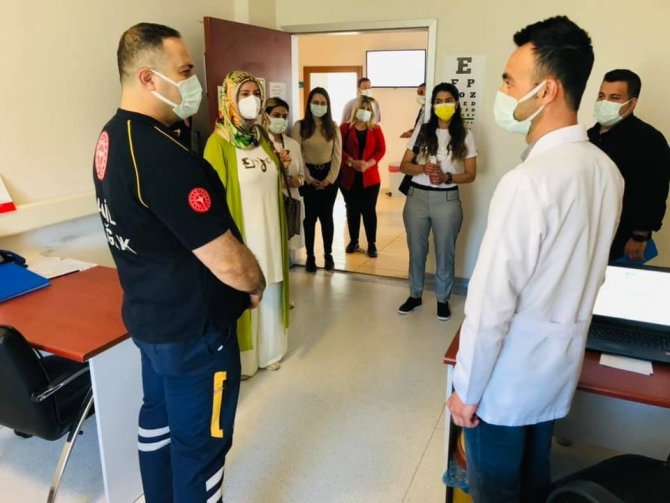 Sağlık Müdürü Doç. Dr. Erkan Hirik, hastane personelleri ile sohbet ederek, ulusal aşı kampanyasında ve pandemi de gösterilen özverili çalışmalarından dolayı teşekkür etti.