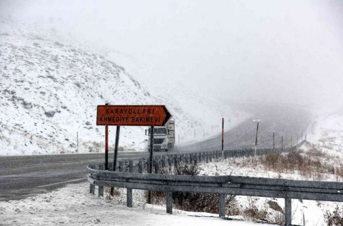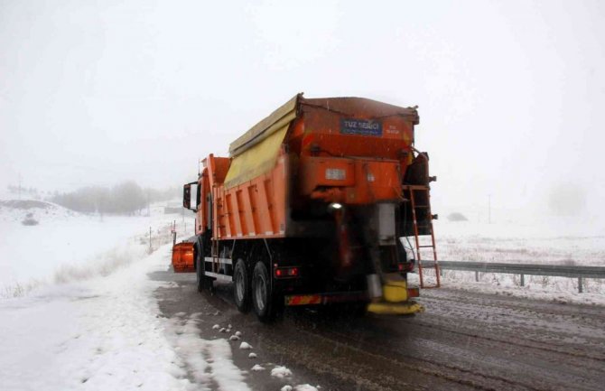 Kara yolunda herhangi bir olumsuzluk yaşanmaması için Karayolları ekipleri kar küreme ve tuzlama çalışmalarını aralıklı sürdürüyor.