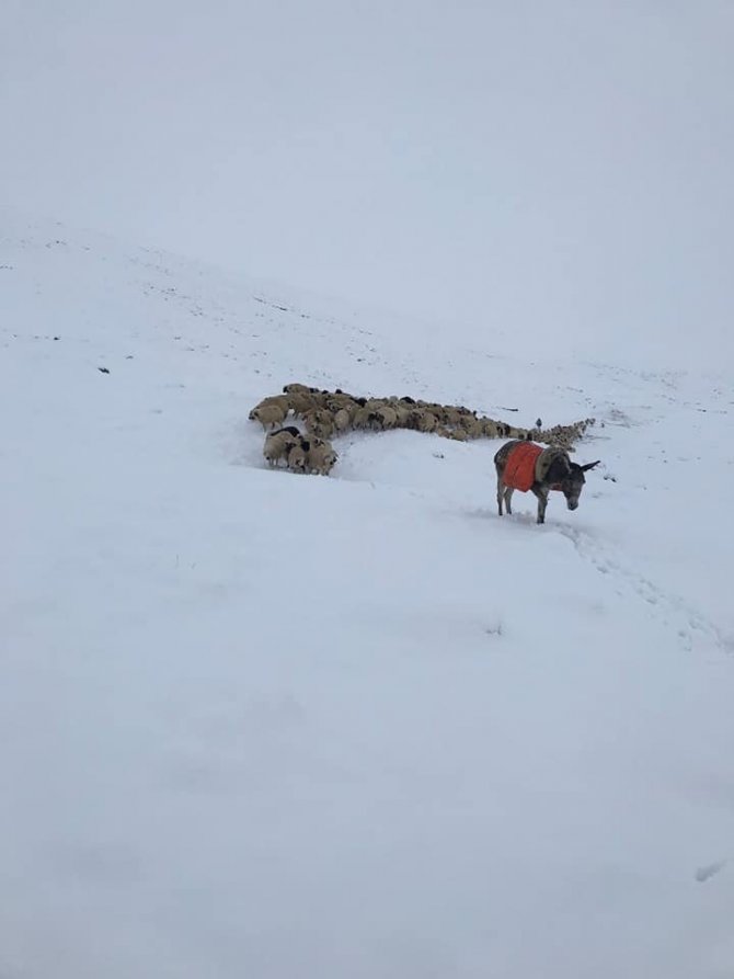 Erzincan'da yağmur yağışı yüksek kesimlerde kara dönüştü. Çayırlı ilçesinde karla kaplanan arazide koyun sürüsü mahsur kaldı.