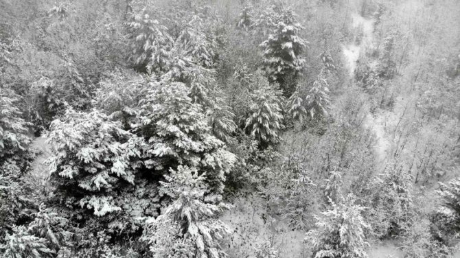 Erzincan'da yağmur yağışı yüksek kesimlerde kara dönüştü. Çayırlı ilçesinde karla kaplanan arazide koyun sürüsü mahsur kaldı. Kardan üzeri beyaza bürünen çam ağaçları görsel manzara oluşturdu.