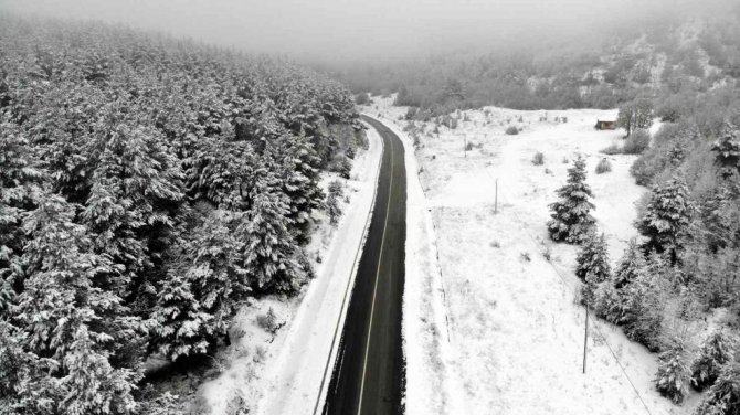 Tekçam Geçidi'nde, adeta kartpostallık görüntüler oluştu. Karla kaplanan ve sisin de etkili olduğu 1900 rakımlı Tekçam Geçidi, İhlas Haber Ajansı ekibi tarafından drone ile havadan görüntülendi.