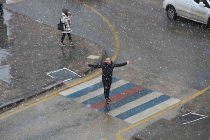 Erzurum şehir merkezine mevsimin ilk karı yağdı. Lapa lapa yağan kar kenti bir anda beyaza bürüdü.