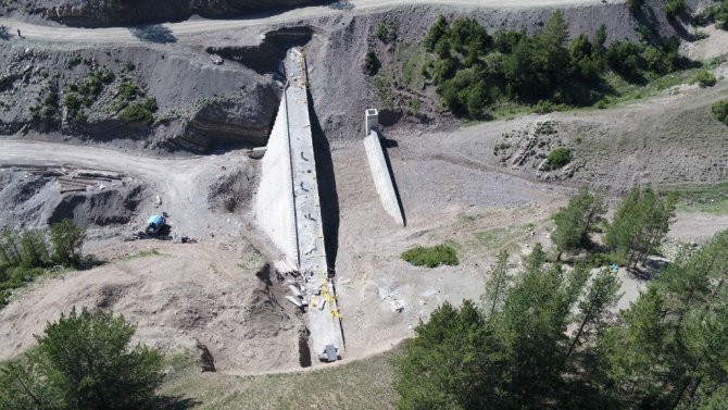 Erzurum Oltu Esenyamaç Göletinde çalışmaların devam ettiğini belirten DSİ Genel Müdürü Kaya Yıldız, "Oltu Esenyamaç Göleti 410 dekar zirai arazinin sulanmasına hizmet edecek. Beton ağırlıklı gövde tipinde inşa edilen gölette bugüne kadar yol, batardo, cebri boru imalatları ile gövdede yaklaşık 5500 m3 beton imalatı tamamlanarak yüzde 90 seviyesinde gerçekleşme sağlandı. 2021 yılı sonunda su tutmayı hedeflediğimiz Gölette, vana imalatları, dolusavak düşü havuzu imalatları ve kret üzeri korkuluk imalatlarına devam edilmektedir. Temelden yüksekliği 17 metre ve su depolama kapasitesi 0,11 milyon m3 olan Erzurum Oltu Esenyamaç Gölet'inin tamamlanması ile 2021 yılı birim fiyatları ile ülke ekonomisine yıllık 250 bin TL katkı sağlanması hedeflenmektedir" dedi.