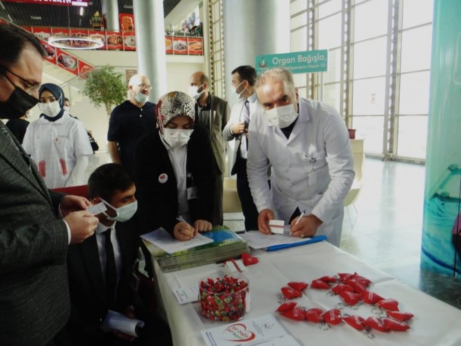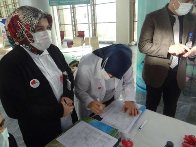 Organ bağışına dikkat çekmek amacıyla hafta çerçevesinde her yıl hastane içerisine açılan organ bağış standında hasta yakınları ve personel organlarını bağışlamak için başvuruda bulundu.