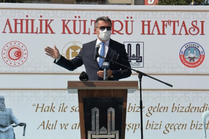 Pandemide esnafların çık etkilendiğini ifade eden Erzurum Valisi Okay Memiş, "Bugün Ahilik Haftası, tüm esnafımıza saygı ve hürmetlerimi sunuyorum. İki yıldır esnafımız kabul edersek çok sorun yaşıyor. Bunu kabul etmemiz lazım. Tüm dünyada olduğu gibi ülkemizde de Pandemi olayı var. Yüz yılda bir olan Pandemi bize denk geldi. Lokantacı esnafımız, kahvehane esnafımız, kuaför esnafımız, bunlar gibi birçok iş kolu büyük mağduriyet yaşadı. Erzurum ölçeğinde kredilerle bir şekilde destek olduk. Sorun yaşadık, bunu da söylemeliyim, aşılama olayını artırarak hep birlikte pandemi belasından kurtuluruz. Ahilik kelime olarak kardeşim anlamına gelen ahi kelimesinden geliyor. Anadolu halkının ekonomik ve kültürel yaşamında önemli bir boyut oluşturan ahilik, dürüstlüğün, sevginin, dostluğun, yardımlaşmanın, hoşgörünün, bilginin ve dayanışmanın sanat ile birleşimidir" ifadelerini kullandı.