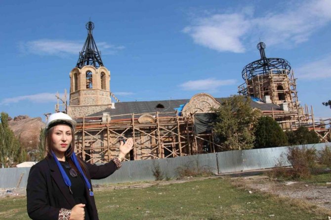 Oltu Belediyesi personeli Çevre ve İnşaat Mühendisi Kilise Yapımı Kontrolörü Elif Karabulut, "Kilisemizde geçtiğimiz yıl restorasyon çalışmaları başladı. Kilisemiz, 1877-1878 Osmanlı-Rus harbinden sonra ilçemiz işgal edilmiş, bu süre içerisinde inşa edilmiş haç planlı bir kilisedir. Geçen yıldan beri restorasyonu devam etmekte olan kilisemizdeki kubbelerde çelik imalat tamamlandı. Kubbelerin kemerlerinde bazı taşlar tamamıyla kaybolmuştu. Kemer taşlarını orijinal yataklarını bularak, taşın rengini dokusuna göre yeniden imitasyonu üretildi. Diğer eskitme, taraklama bizim mücartı dediğimiz çalışmaları yapılarak yerine konuldu. Statiği korunarak bağlama işlemleri yapıldı. Şu anda çatı kaplama imalatına geçilecek, onun dışında kilisenin içerisinde diğer taş imalatlarının çoğu tamamlandı. Dış tarafta basamaklar imal edilmektedir" dedi.