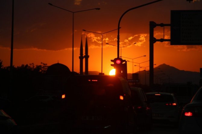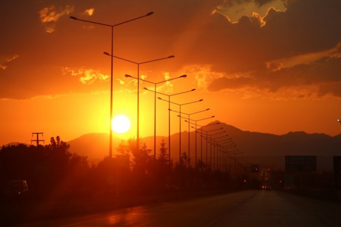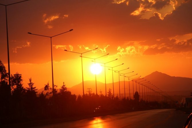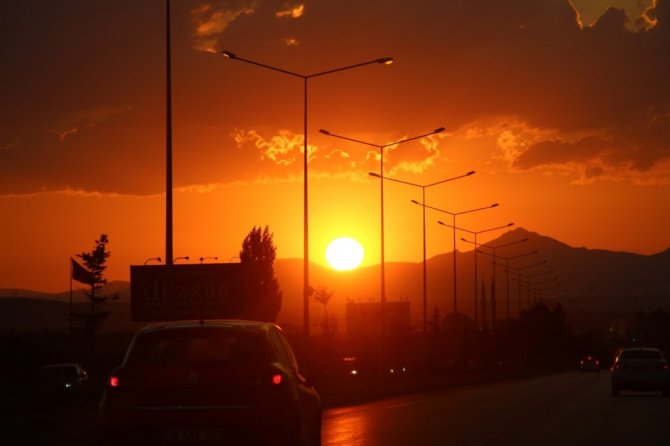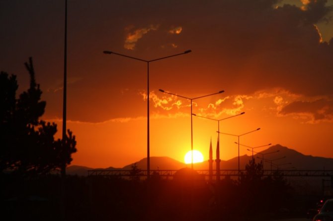 Erzurum'da gün batımının geceyi kızıla boyaması kartpostallık görüntüler oluşturdu. Güneşin masallara konu olan hali görenleri büyüledi.