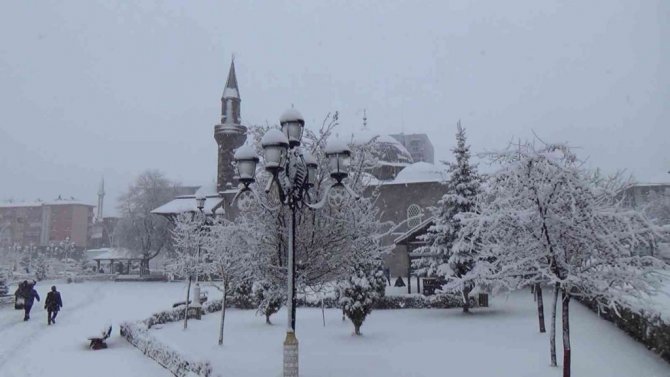 Erzurum’da kar yağışı görsel şölen oluşturdu