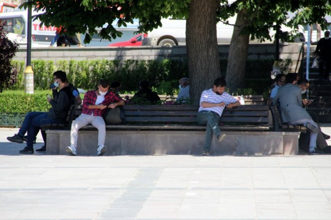 Hava sıcaklığının 27 dereceyi bulduğu Erzurum'da vatandaşlar ağaç gölgelerinde, havuz kenarında oturarak kendilerini güneşten korumaya çalışıyorlar.