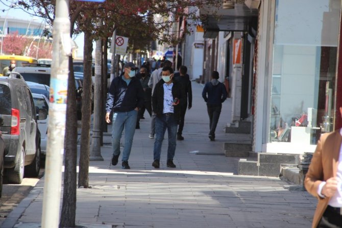 Türkiye geneli uygulanan sokağa çıkma kısıtlamasına yüzde 70 oranında uyulan Erzurum'da pazar, market gibi alışveriş yerlerinin de kalabalık olduğu gözden kaçmadı.