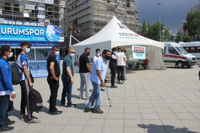 Erzurum İl Sağlık Müdürlüğü tarafından Erzurumspor taraftarına randevusuz aşı etkinliği düzenlendi.