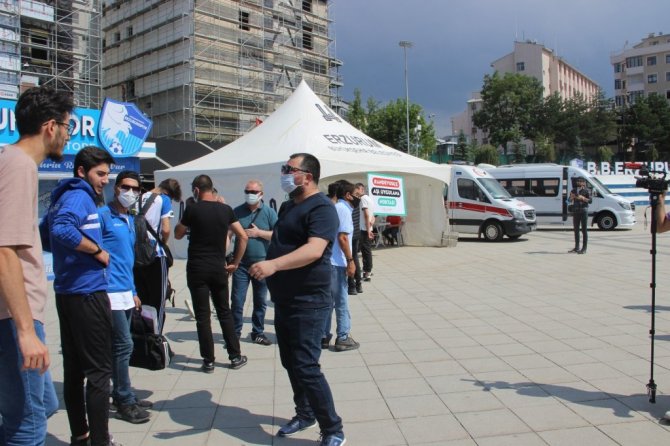 Erzurumspor taraftarı maçları stadyumda izleyebilmek için aşı kuyruğu oluşturdu