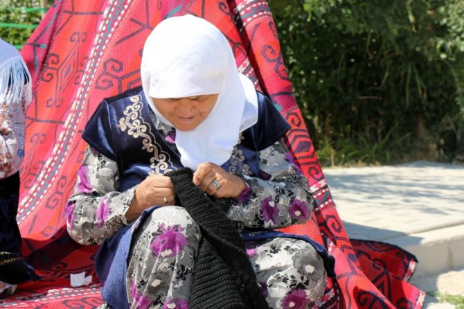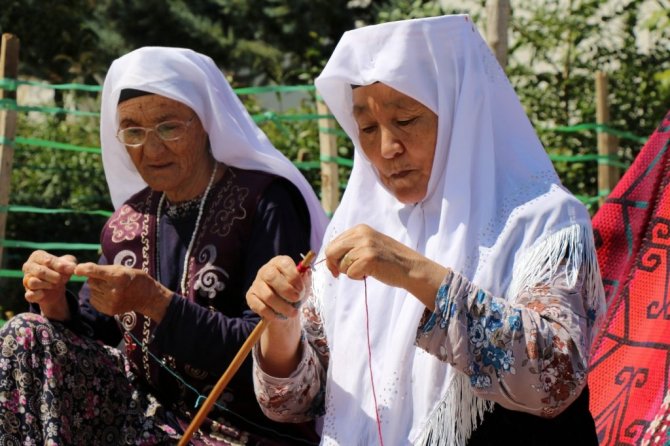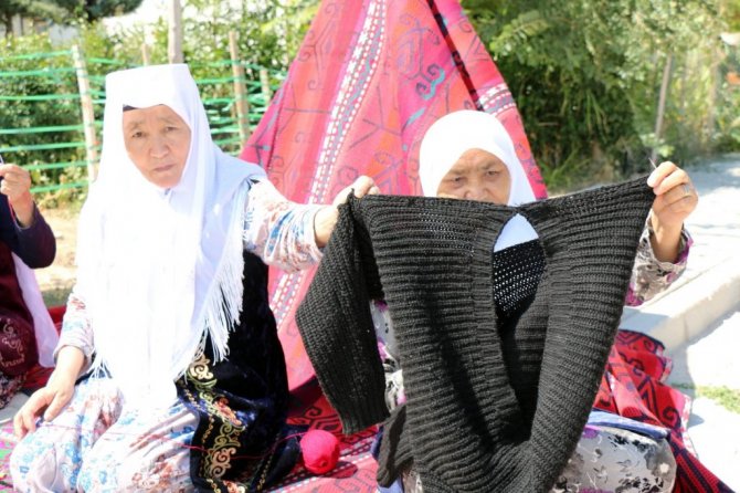 Kırgız kadınları eskiyen kazak, yelek gibi elbiselerini atmak yerine bu elbiselerden ip elde ediyorlar. İpleri yumak haline getiren Kırgız kadınları, mahallelerinde kurdukları halı dokuma tezgahıyla halı, kilim, çanta, yastık kılıfı gibi ev eşyası yapıyor. Koç başı, zeytin ağacı gibi Kırgız kimliği ve kültürünün çeşitliliğini yansıtan motifler, kadınların maharetli ellerinde, rengarenk iplerle halı ve kilimlere işleniyor. Kırgız kadınlarının ellerinde hayat bulan metrekaresinde binlerce düğümün bulunduğu el emeği göz nuru bu ürünler hem gelecek kuşaklara aktarılıyor hem de kadınların gelir kaynağı oluyor.