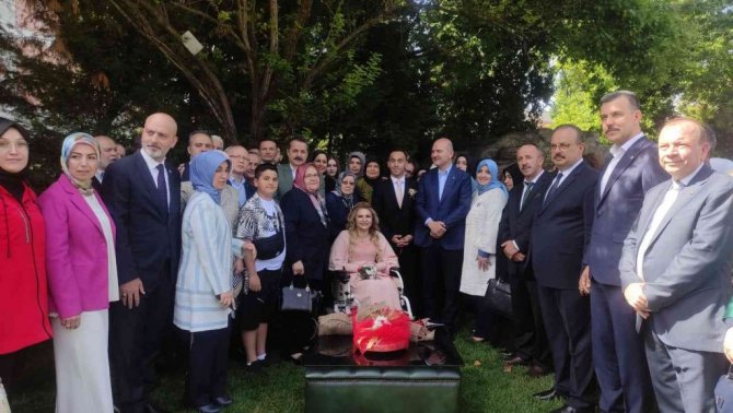 Nişan kurdelesini kesmek için Bursa'ya gelen İçişleri Bakanı Süleyman Soylu, kurdeleyi kestikten sonra çifte mutluluklar diledi. Karaburun ise o anları sosyal medya hesabından paylaştı.