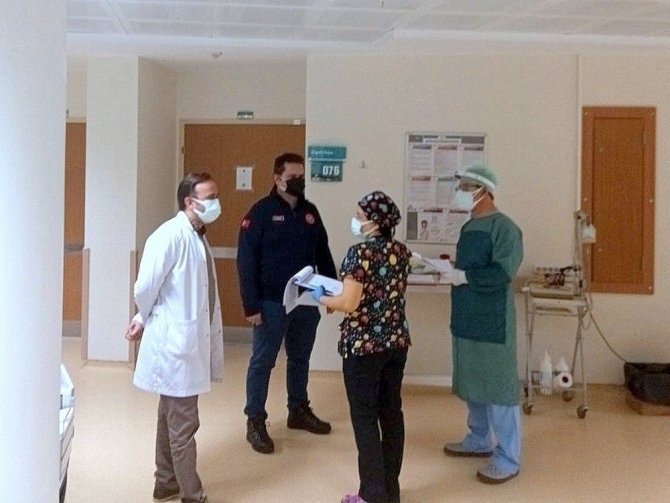 Müdür Bilge, Yunus Emre Devlet Hastanesi Acil Servis, Göğüs Hastalıkları ve Covid-19 hastalarının tedavi gördüğü servisleri ziyaretinde, karşılaştığı hasta ve hasta yakınlarına herhangi bir sorunları olup olmadığını sorarak geçmiş olsun dileklerini ileterek şifa diledi. Servis ve yoğun bakımda tedavilerine devam edilen hastaların çoğunluğunu oluşturan 60 yaş ve üstü bireylere de özel ilgi göstererek, hasta ve yakınlarından tedavi süreçlerinin tamamlanmasıyla taburcu olmalarının akabinde kişisel hijyen, fiziki mesafe ve maske kurallarına uymaya devam etmelerini istedi. Hastane Başhekim Yardımcısı Op. Dr. Ersin Işıldı'dan hastaların tedavi süreçleriyle ilgili bilgiler aldı. Servislerde görev yapan sağlık personelleriyle de bir araya gelerek hatırlarını sorup, herhangi bir eksikliklerinin olup olmadığını sorarak kolaylıklar diledi.
