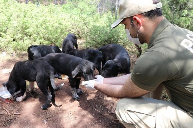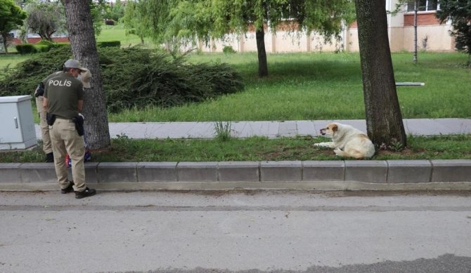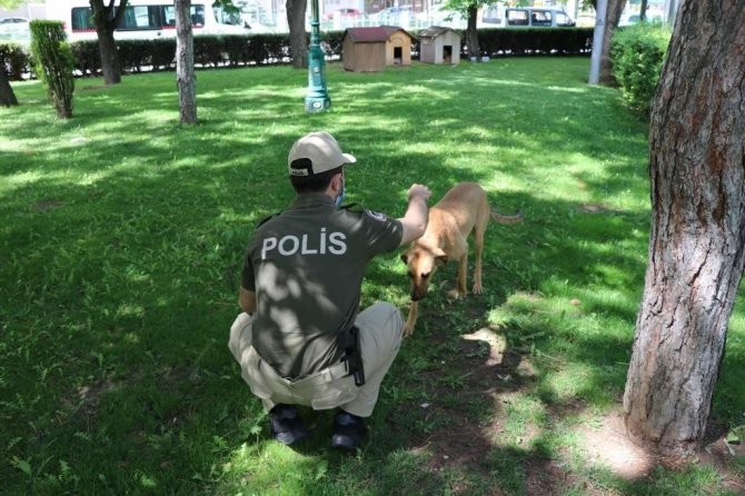 Eskişehir polisi, sokağa çıkma kısıtlamasında yalnız kalan sokak hayvanlarını unutmayıp mama verdi.