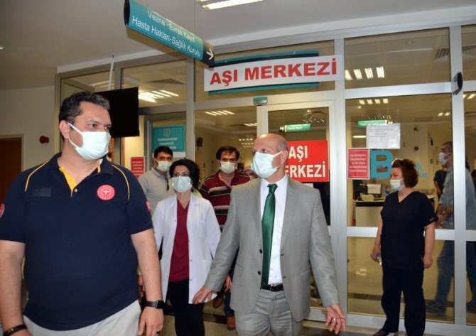 Yunus Emre Devlet Hastanesi, Eskişehir Şehir Hastanesi ve Eskişehir Sanayi Odası hizmet binasında oluşturulan Aşı Uygulama Merkezini ziyaret eden Prof. Dr. Uğur Bilge, hastanelerin aşılama odaları, poliklinik hizmetleri ile acil servisini gezerek vatandaşlara sunulan sağlık hizmetlerini yerinde değerlendirdi. Değerlendirmeler sırasında vatandaşlarla sohbet etme imkânı bulan Bilge, vatandaşlardan gelen soruları yanıtlayarak onların endişelerini giderip, yapılan aşılar hakkında bilgilendirmelerde bulundu. Herhangi bir aşı adayı olan ürünün insanlara verilmeden önce, klinik öncesi sınavlardan geçtikten sonra klinik geliştirme ve üretim zinciri dâhil birçok teste tabii tutulduğunu belirten Bilge "Bu aşamalarda kullanılan aşının toksik etkilerinin olup olmadığı ve vücudun verdiği tepkiler dikkatle incelenir. Aşılar güvenli ürünlerdir. Aşı yan etkilerinin çoğu hafif ve geçici yan etkilerdir. Aşılanan kişilerde; aşı uygulanan yerde kızarıklık, hassasiyet veya ağrı olabilir. Aşılama sonrasında istenmeyen bir etki görüldüğünde hastaneye veya aile hekiminize başvurulabilir" dedi.