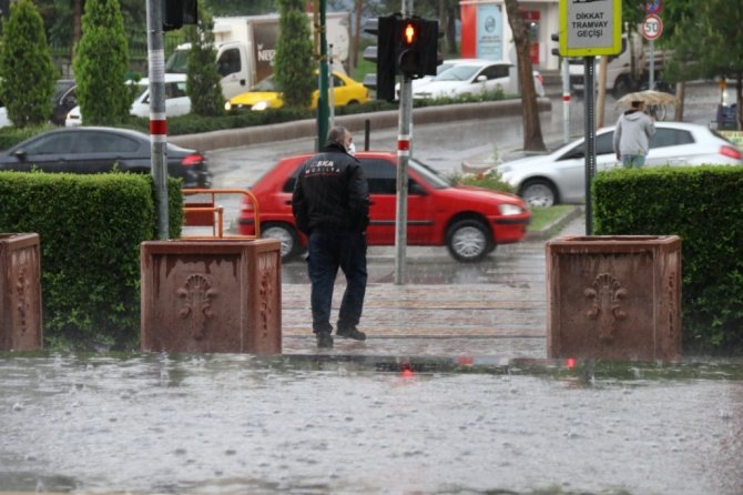 Eskişehir’de aniden başlayan sağanak yağmur hayatı felç etti