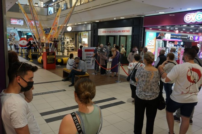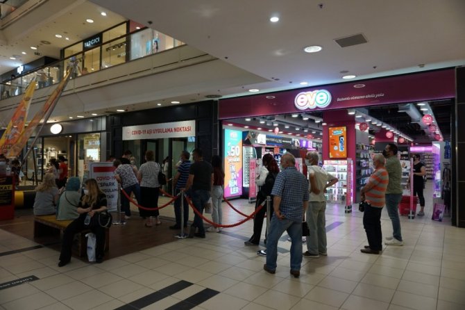 Eskişehir" de yapılan aşı sayısı 800 bine yaklaşırken, Sağlık Bakanlığı Eskişehir İl Sağlık Müdürlüğü ve Espark Alışveriş Merkezi işbirliğiyle pandemi ile mücadeleye destek vermek amacıyla 1 Temmuz'da çalışanlar ve ziyaretçiler için açılan randevusuz aşı uygulama noktası ilgi görmeye devam ediyor.