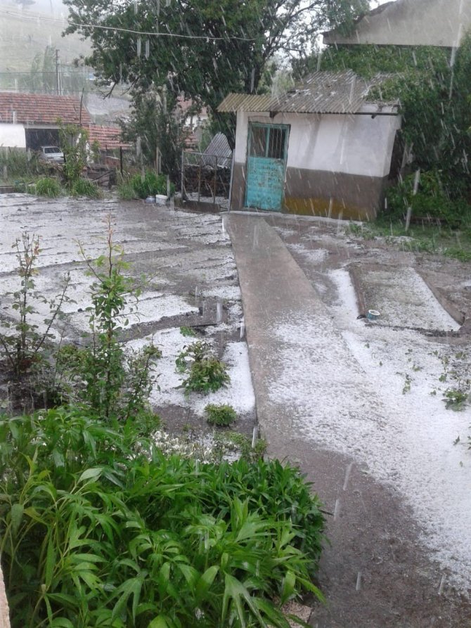 Eskişehir'in Seyitgazi ilçesinde öğleden önce başlayan ve yaklaşık 1 saat süren dolu yağışı çevreyi beyaza bürüdü.