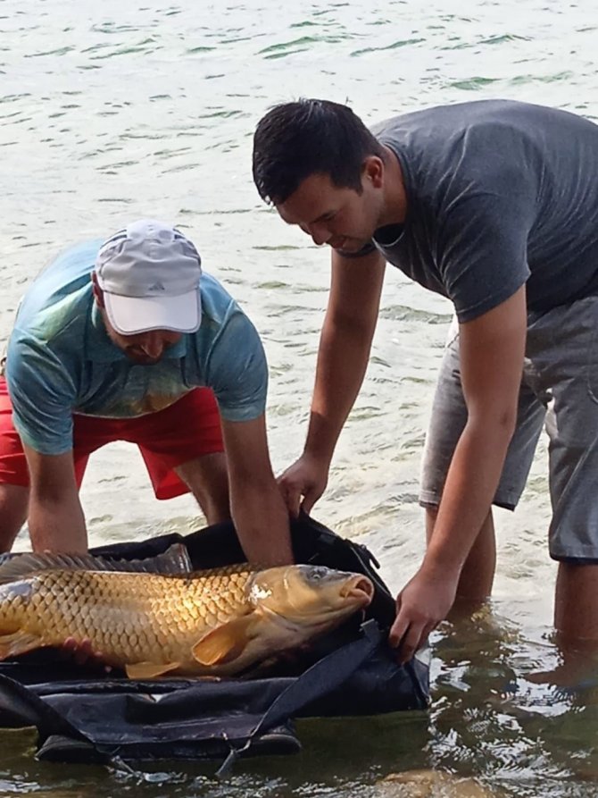 Öte yandan sazan balığının göle geri bırakılması esnasında oradan geçen bir vatandaş "Bu balığı bana satın" diyerek teklifte bulundu. Balıkçılardan Mertcan Çora ise teklifi kabul etmeyip, "Avlanma amacımız yemek için değil. Balığı göle bırakalım ki sonra tekrar tutalım" dedi.
