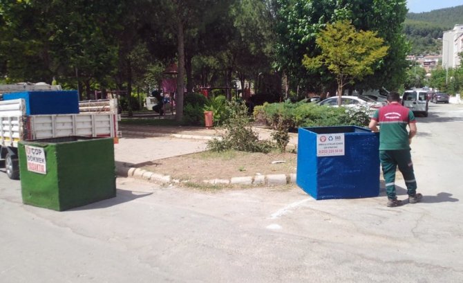 Menteşe'de bulunan 180 adet geri dönüşüm sepetlerinden eskiyen ve deforme olan sepetler Menteşe ekipleri tarafından yenileri ile değiştiriliyor.