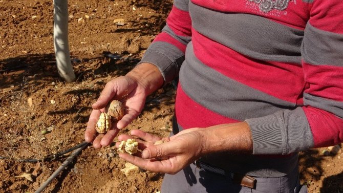 Uşak Eşme ilçesinde üreticilerin yeni ilgisi olan cevizin hasadı, sonbaharın gelmesiyle başladı. Toplanan cevizlerin kaliteli ve bol olması ise üreticinin yüzünü güldürdü. 6 senedir ceviz üretimiyle uğraşan Aşkın Çetin, geçen sene hasatın fazla olmadığını belirtirken bu sene 700 - 800 kilo hasat umduklarını dile getirdi. Çetin, “Önce ölçümle, toprak tahlilleriyle başladık. Bu işin çok zorlukları oldu. Toprak tahlilinden sonra yer mesafesi, ölçümü, dikimine karar verdik. Sonrasında çukur açma dediğimiz olay var. 1 buçuk metre mesafeli çukurlar açarak, açık köklü cevizlerimizi dikiyoruz. Burası altı yıl oldu. Zaman zaman arada boş geçilen, kuruyanlar oldu. Tozlayıcı dediğimiz çeşitler bazen doğru çıkmadı. Onları aşılayarak eksiklerimizi gidermeye çalışıyoruz. Geçen sene çok nadir bir hasatımız oldu, 200 kilo kadar. Bu sene 700-800 arasında bir hasat umuyoruz” dedi. Ceviz ihracatı konusuna da dikkat çeken Çetin, “Eşme’de gelecek dönemlerde ceviz piyasasının da pazarının da daha iyi olacağını tahmin ediyorum ama onu zaman gösterecek” dedi.