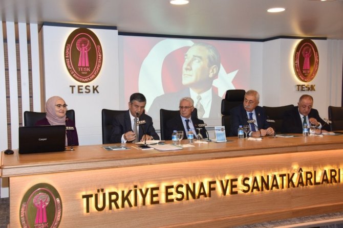 Türkiye Esnaf ve Sanatkarları Konfederasyonunun (TESK) Mesleki Eğitim toplantısı TESK Konferans Salonu’nda gerçekleştirildi. Toplantıya TESK Genel Başkanı Bendevi Palandöken, Başkan Vekilleri, Federasyon ve Birlik Başkanları ile Aile, Bakanlık yetkilileri katıldı. Toplantıda Aile, Çalışma ve Sosyal Bakanlık yetkilileri tarafından esnaf ve sanatkarlara verilmesi planlanan öfke kontrolü eğitimlerinin içeriği ve kapsamına dair bilgilendirme yapıldı.