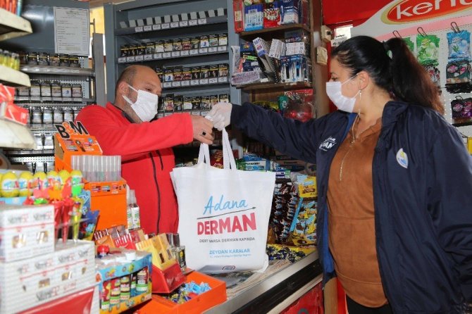 Büyükşehir Belediyesi'nin mağdur olan çeşitli iş kollarındaki esnafa yönelik maddi desteğin ardından, Derman ekipleri esnafa sağlık kiti dağıttı. Sağlık kitinde el dezenfektanı ve temizlik maddeleri bulunuyor.