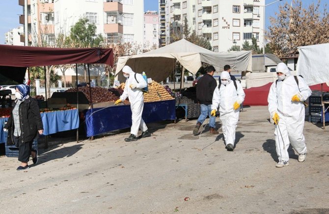 İnsanların yoğun olduğu mekanlarda tedbirin elden bırakılmaması çağrısında bulunan ekipler, halkın yoğun kullandığı alanlarda dezenfekte çalışmalarını arttırdı.